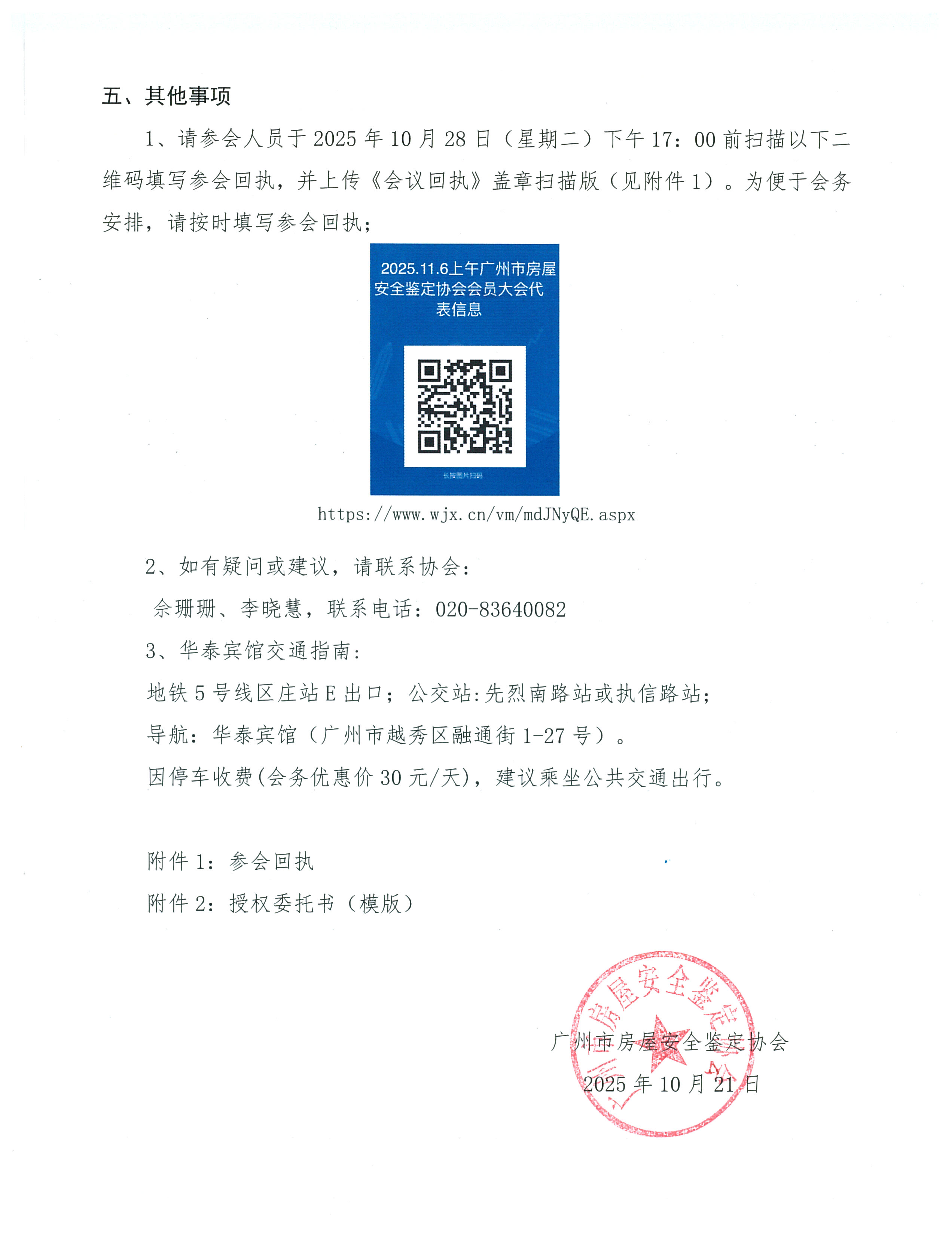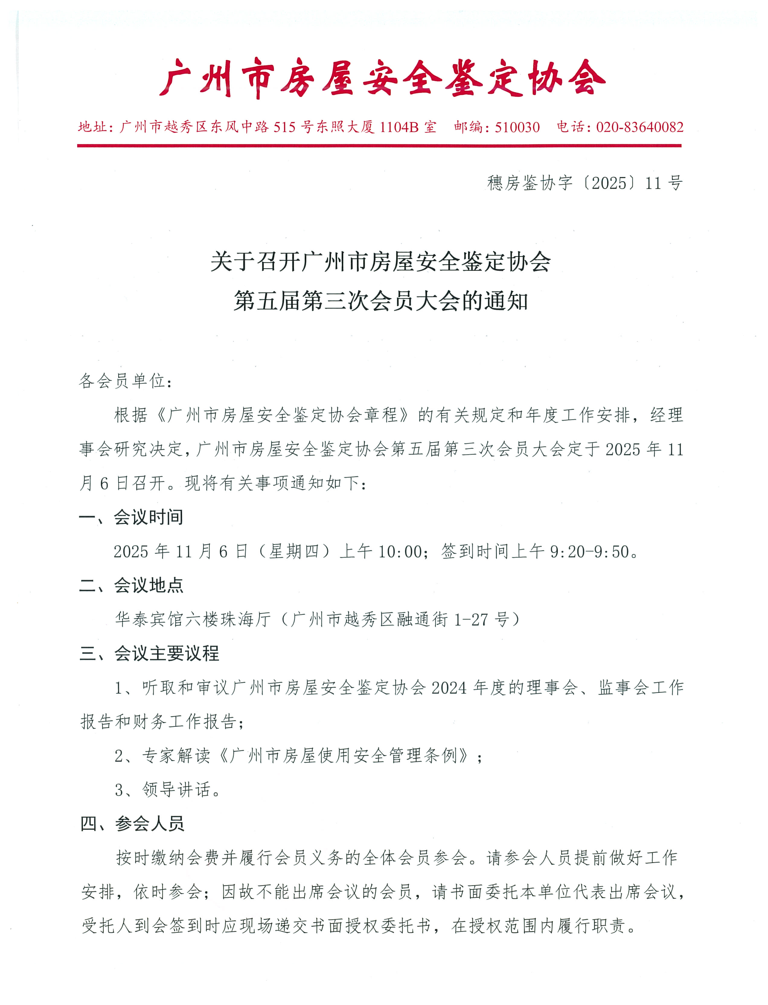 关于召开广州市房屋安全鉴定协会第五届第三次会员大会的通知(穗房鉴协字〔2025〕11号)