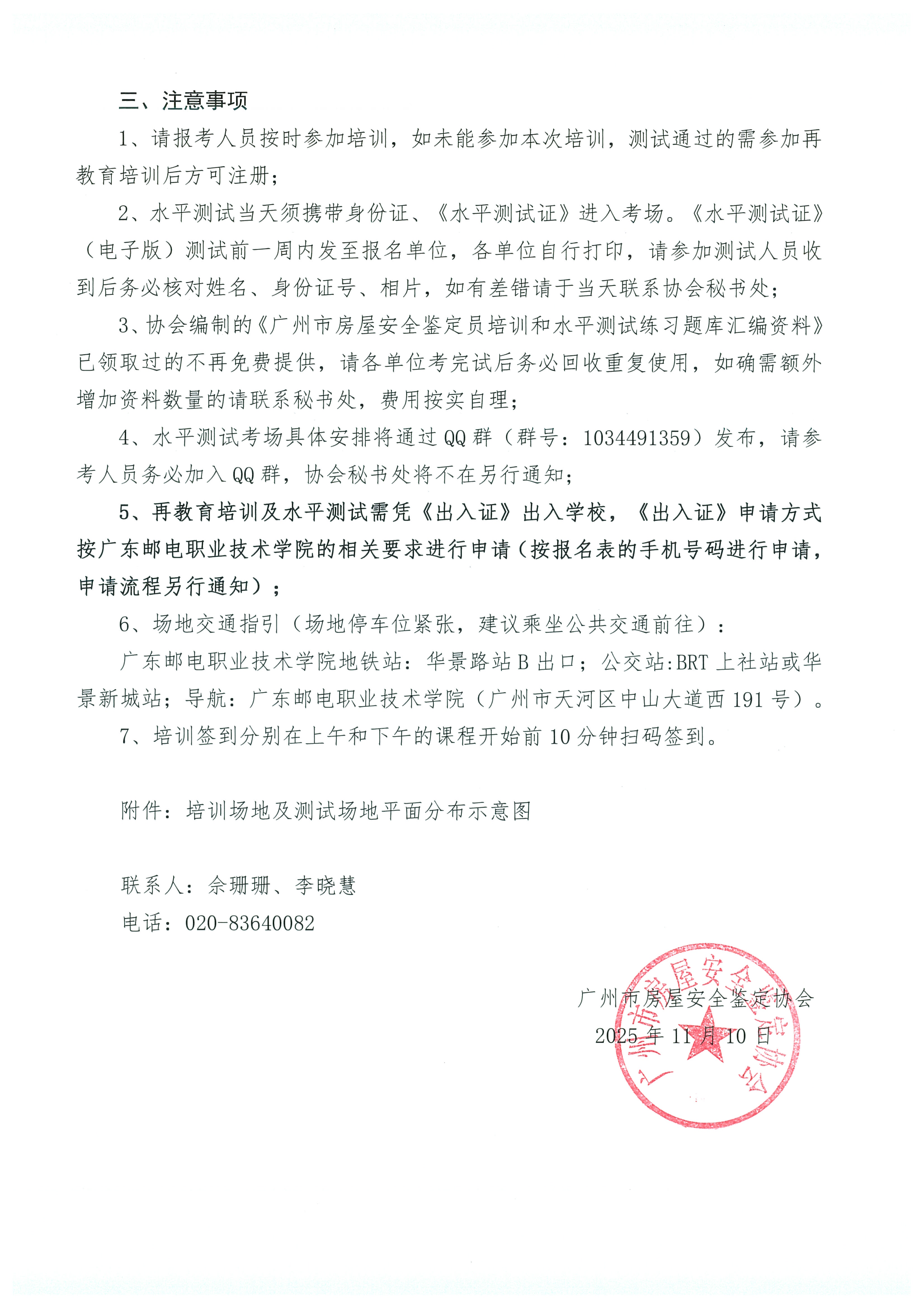 关于 2025年度房屋安全鉴定员再教育培训及水平测试安排的通知(穗房鉴协字〔2025〕13号)