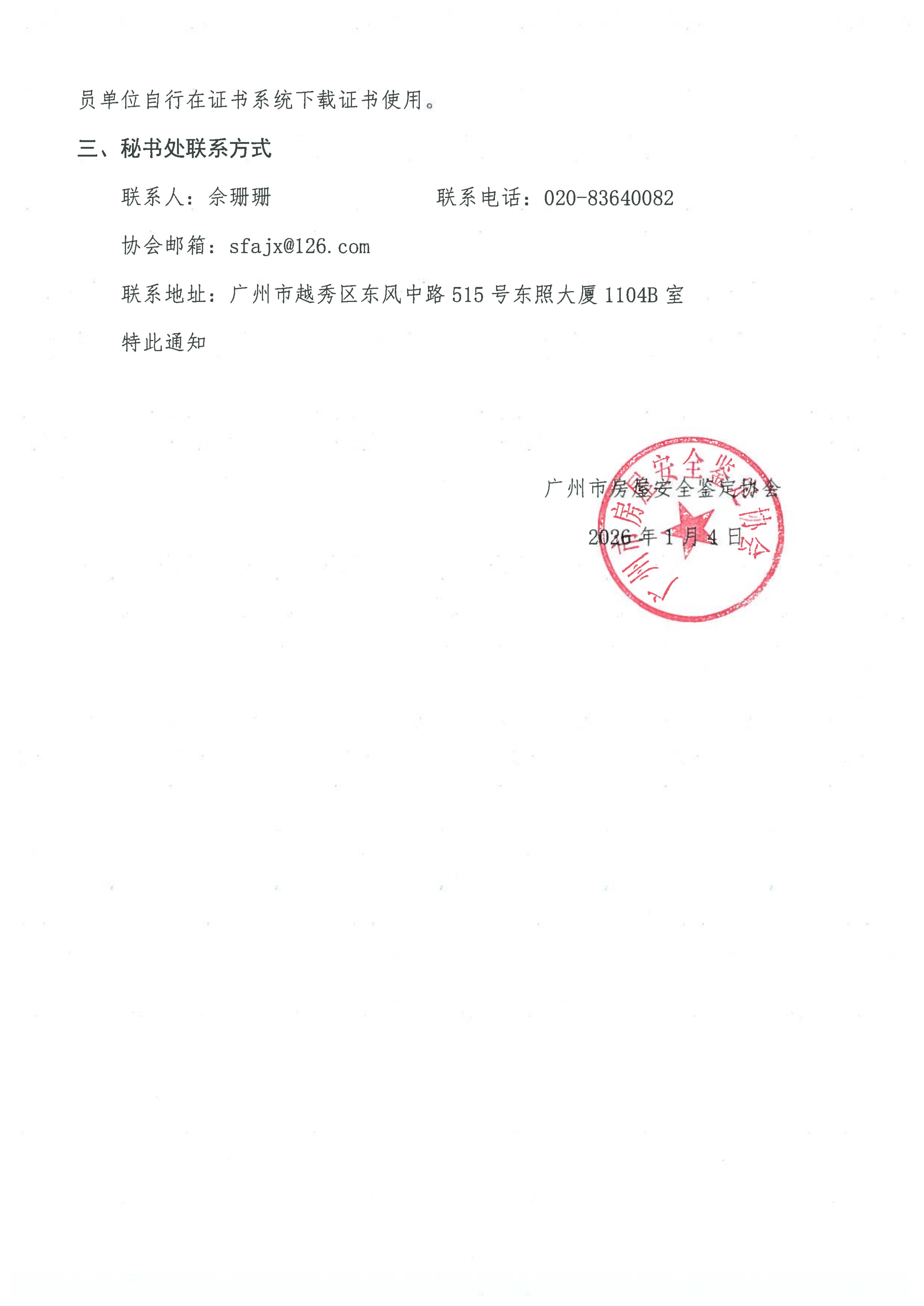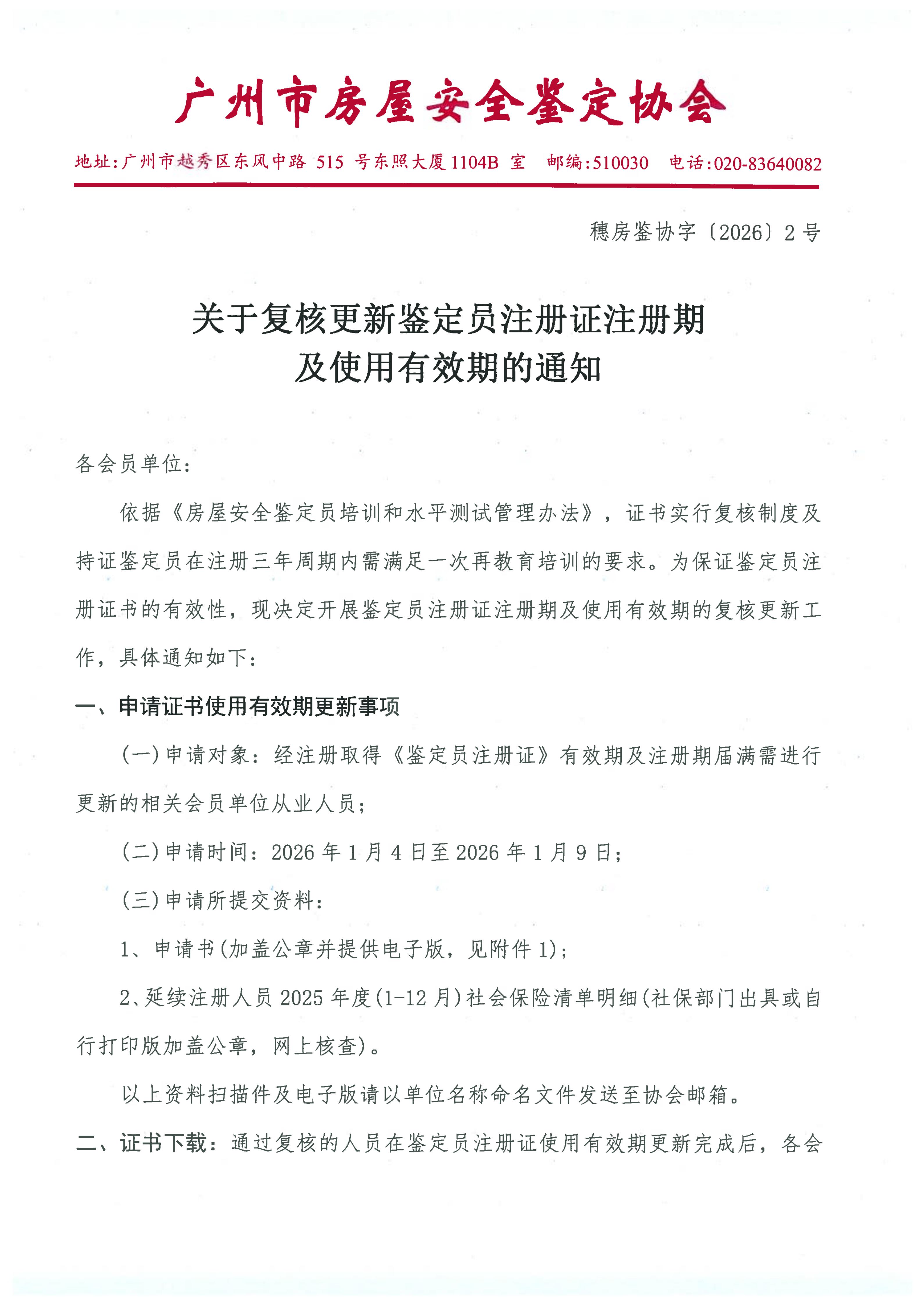 关于复核更新鉴定员注册证注册期及使用有效期的通知(穗房鉴协字〔2026〕2号)